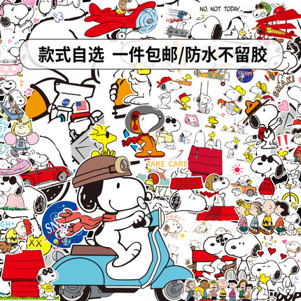 自选史努比卡通贴纸笔记本电脑行李箱头盔车贴装饰滑板防水贴画