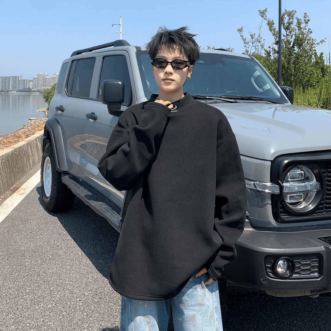 半高领加绒长袖T恤男款2025新款秋冬宽松时尚打底衫内搭纯色上衣