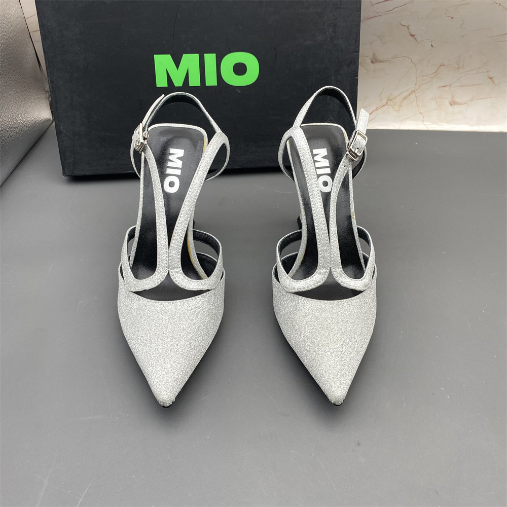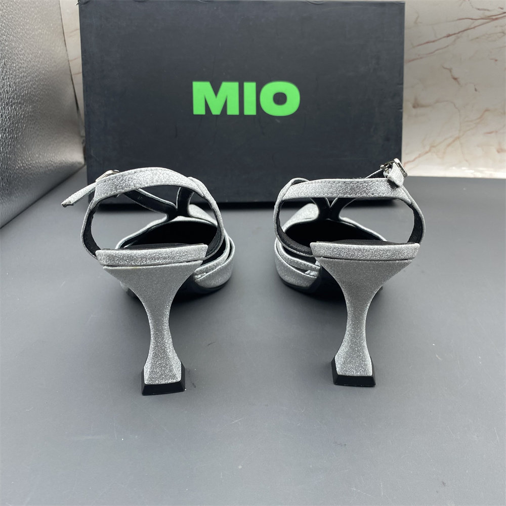 MIO米奥断码撤柜处理女鞋尖头包头细跟高跟扣带后空时尚气质凉鞋