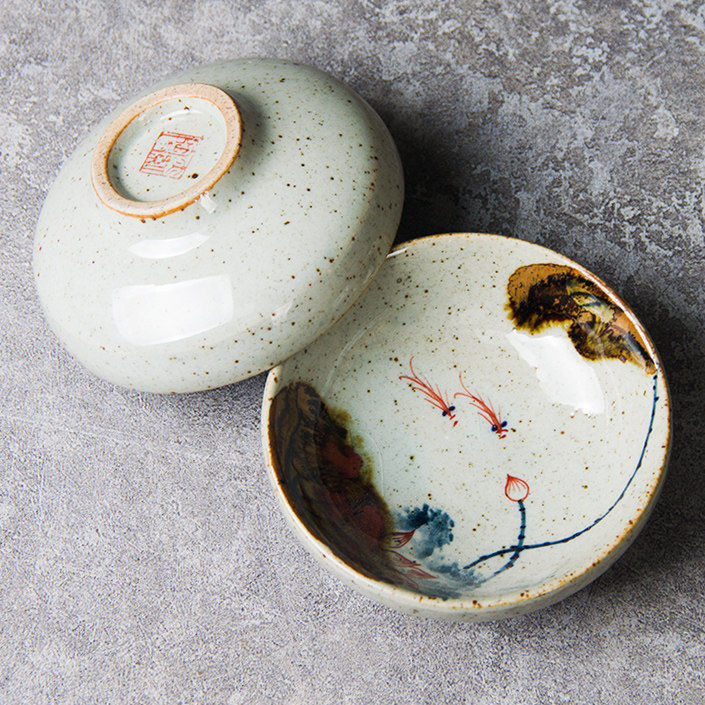 纯手绘陶瓷茶杯中式青花釉里红品茗杯复古窑变茶盏茶碗主人杯大号