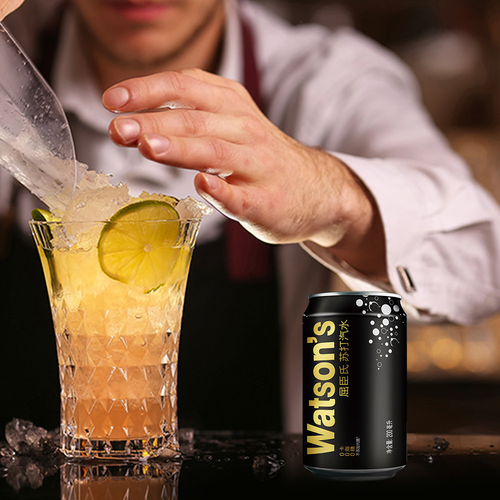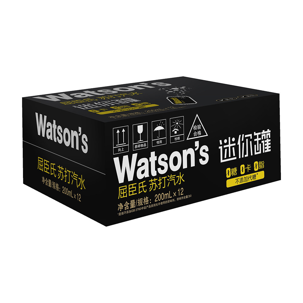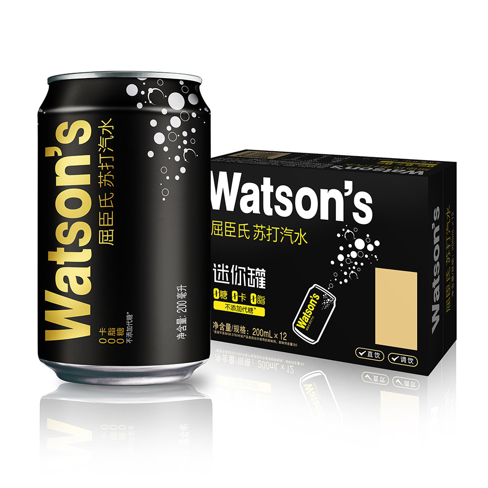 屈臣氏原味迷你罐苏打汽水200ml*12罐碳酸饮料气泡水调饮