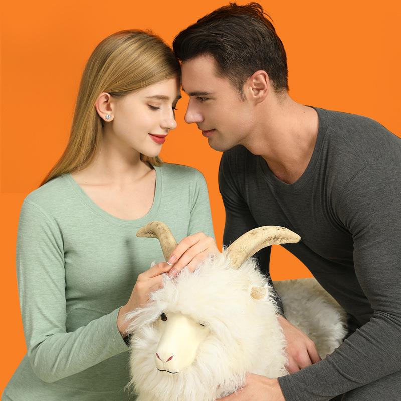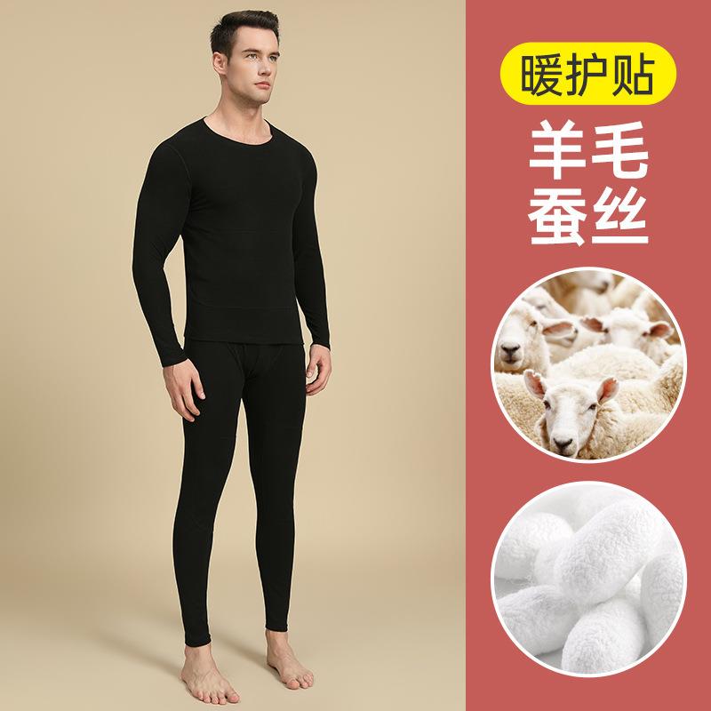 羊绒贴片羊毛男士秋衣秋裤套装打底衫蚕丝贴片保暖内衣女加绒加厚