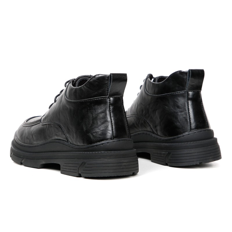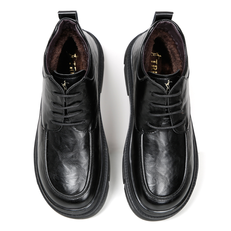 才子男鞋加绒加厚棉鞋男2023新款保暖厚底防滑高帮休闲男黑色皮鞋