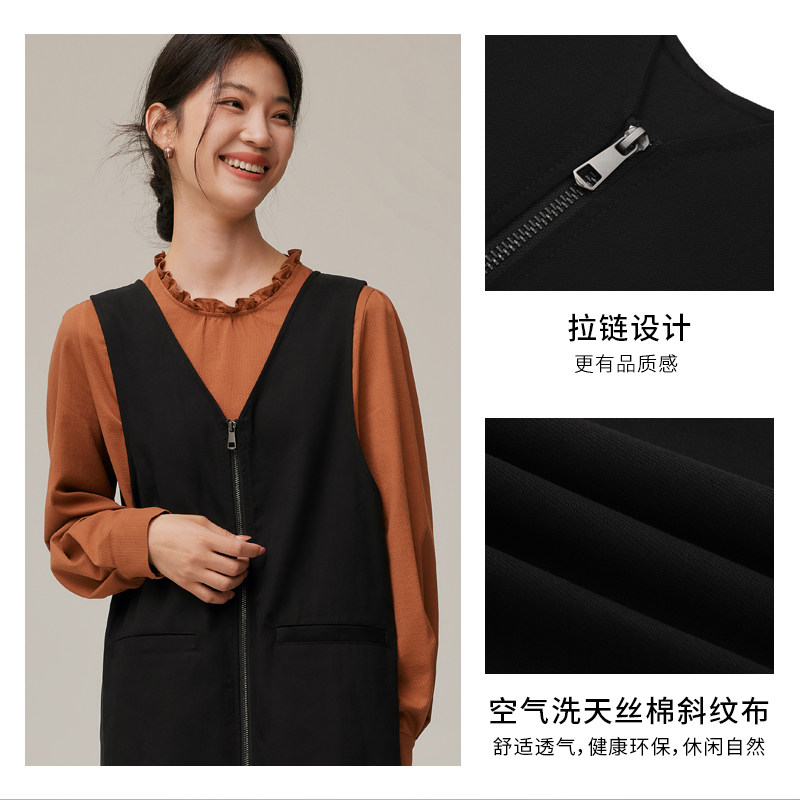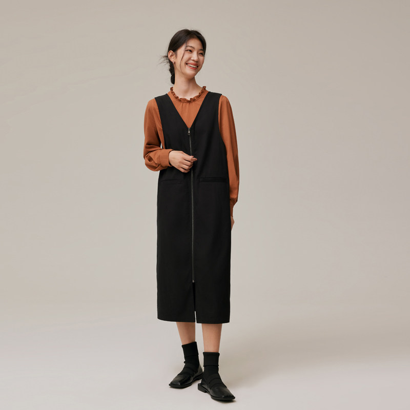 bbfer本依凡秋款黑色背带裙女背心连衣裙遮肚显瘦长裙STSLQ0324
