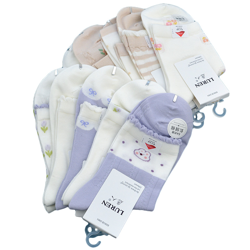 鹿人女士春秋四季薄款中筒无骨袜子卡通时尚女袜条纹字母袜3113