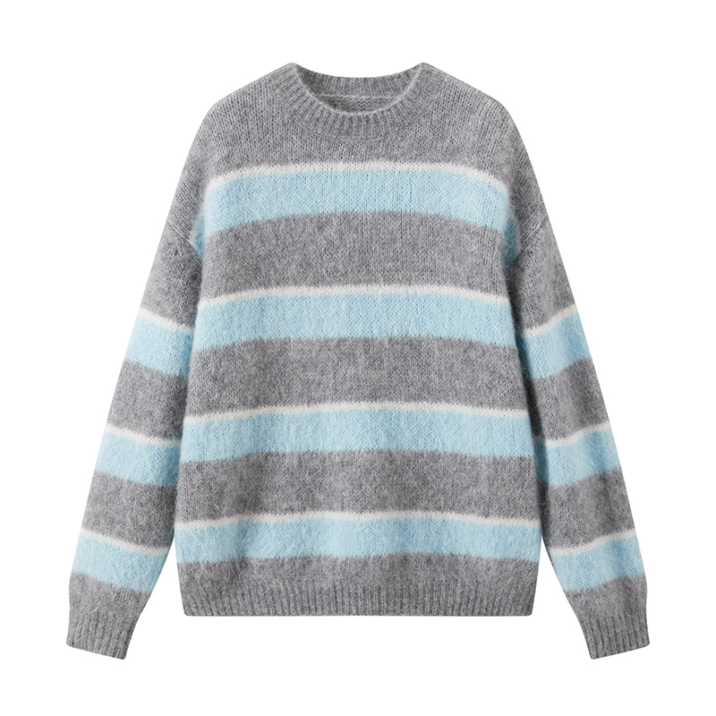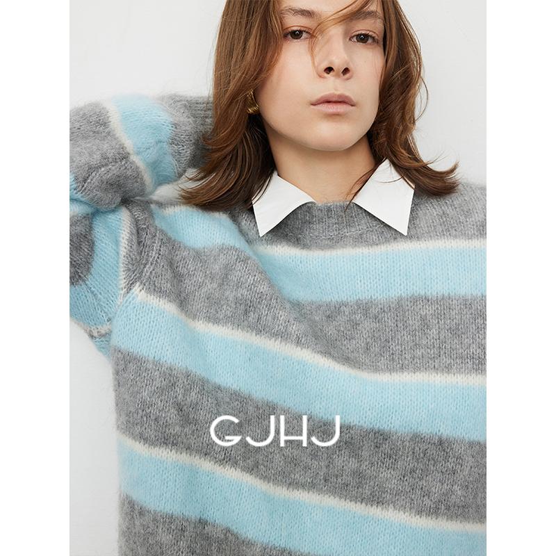 gjhj【兰幽】闭眼入 马海毛羊毛撞色条纹慵懒毛衣圆领针织衫女