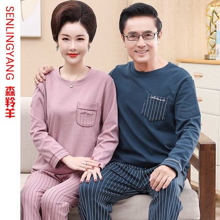 情侣睡衣纯棉长袖女春秋季圆领爸爸妈妈可外穿全棉休闲家居服套装