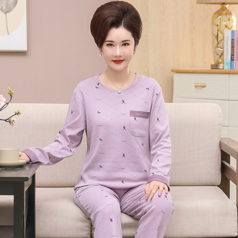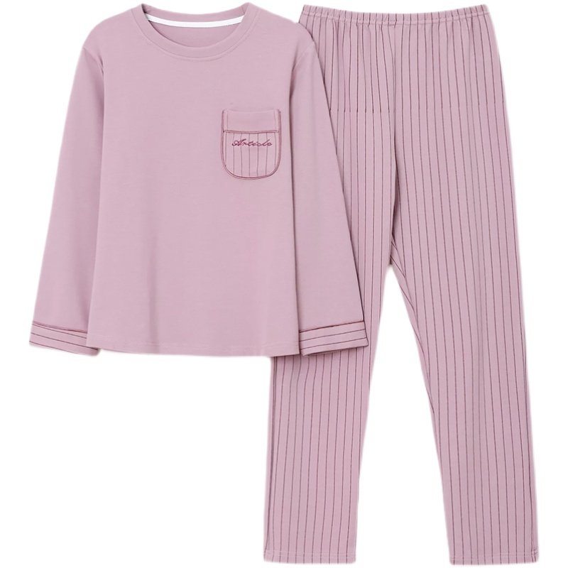 圆领长袖家居服纯棉情侣