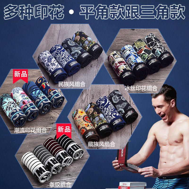 男士内裤莫代尔纯棉三角裤衩夏季透气中腰性感冰丝平角四角短裤头