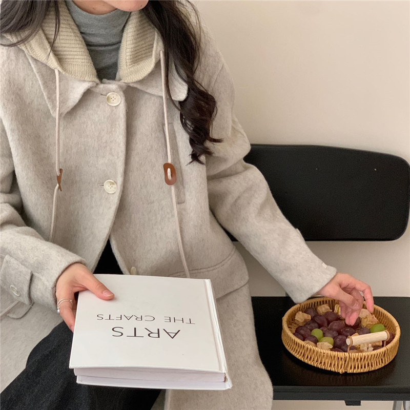 针织帽双面羊绒大衣女长款秋冬新款韩版双面呢减龄显瘦毛呢外套女