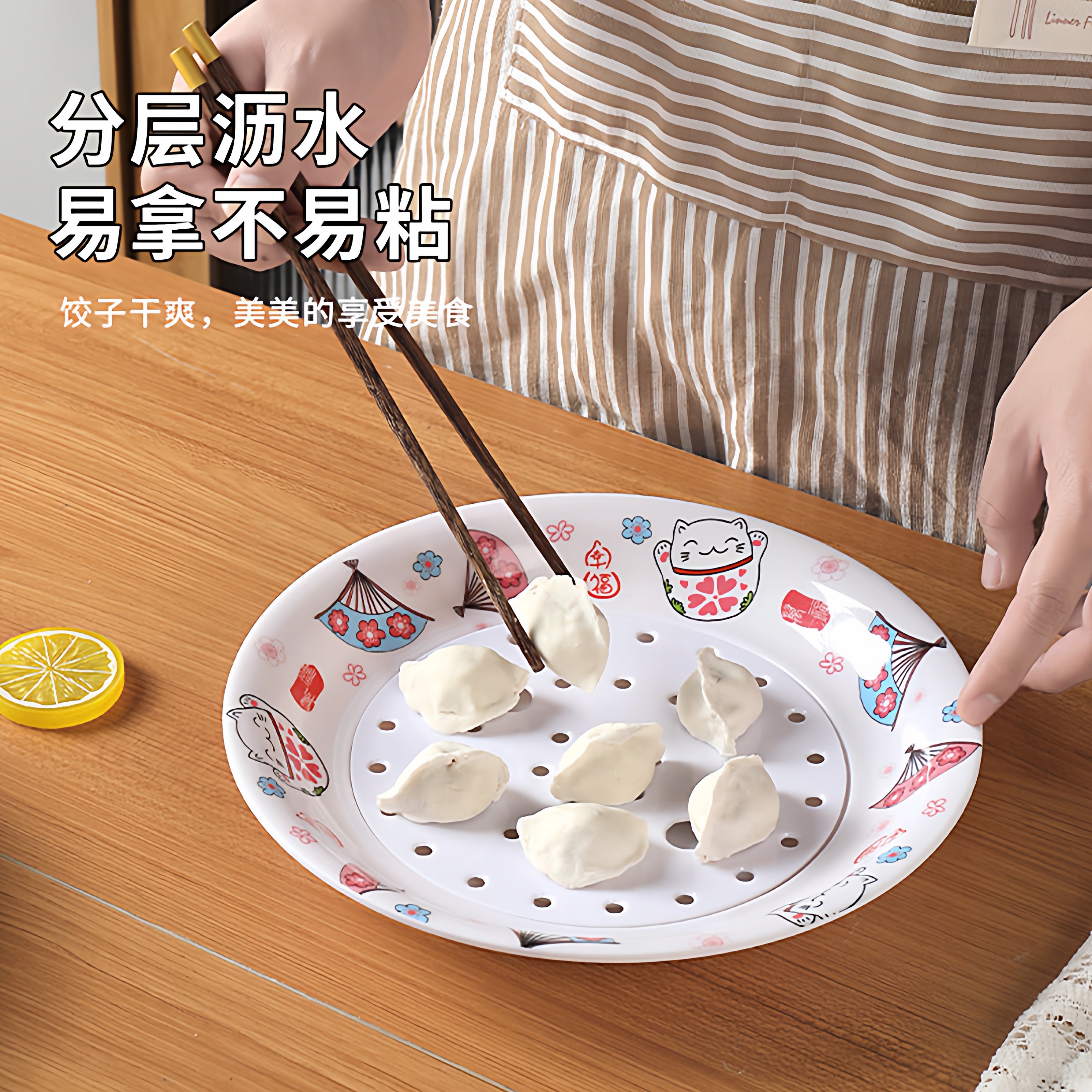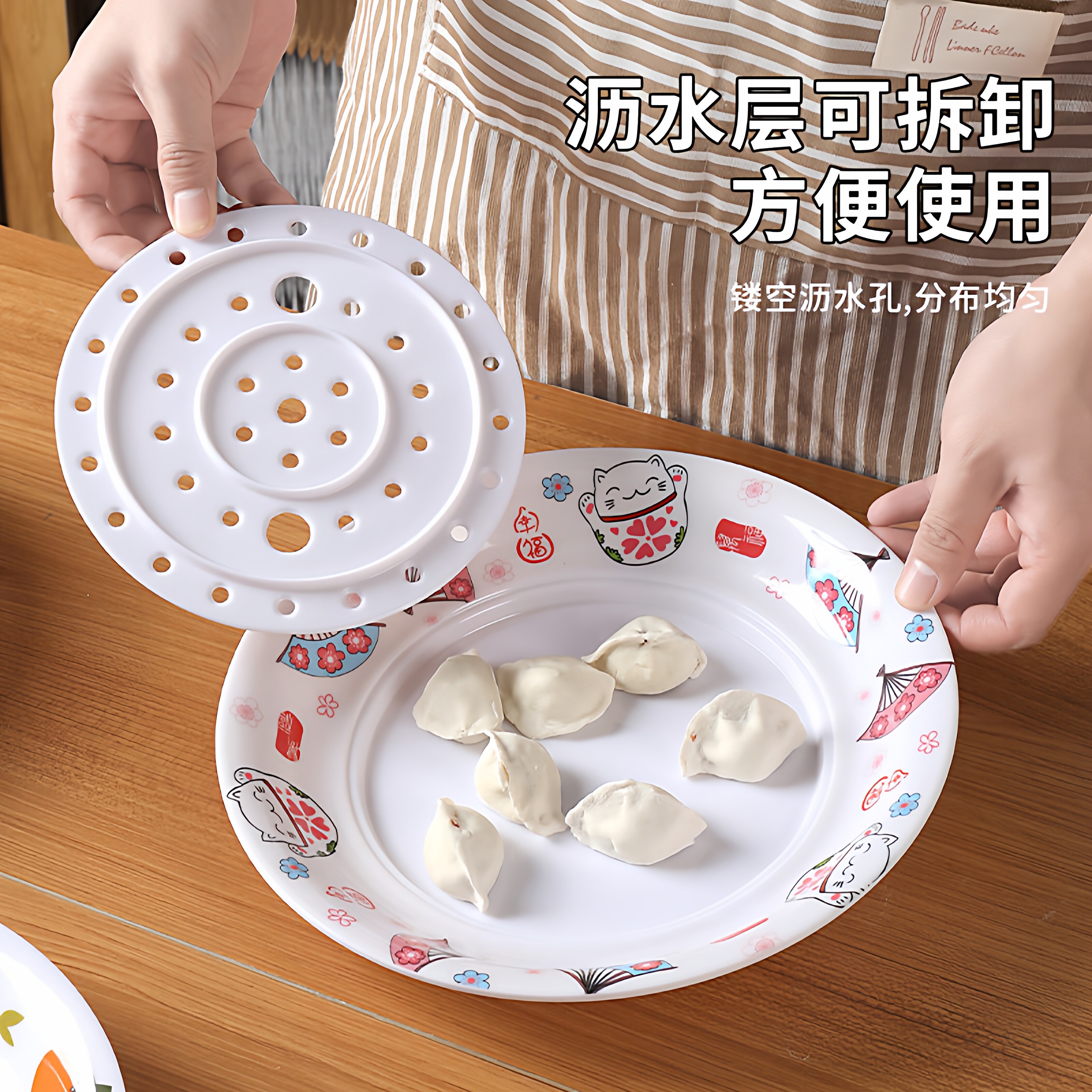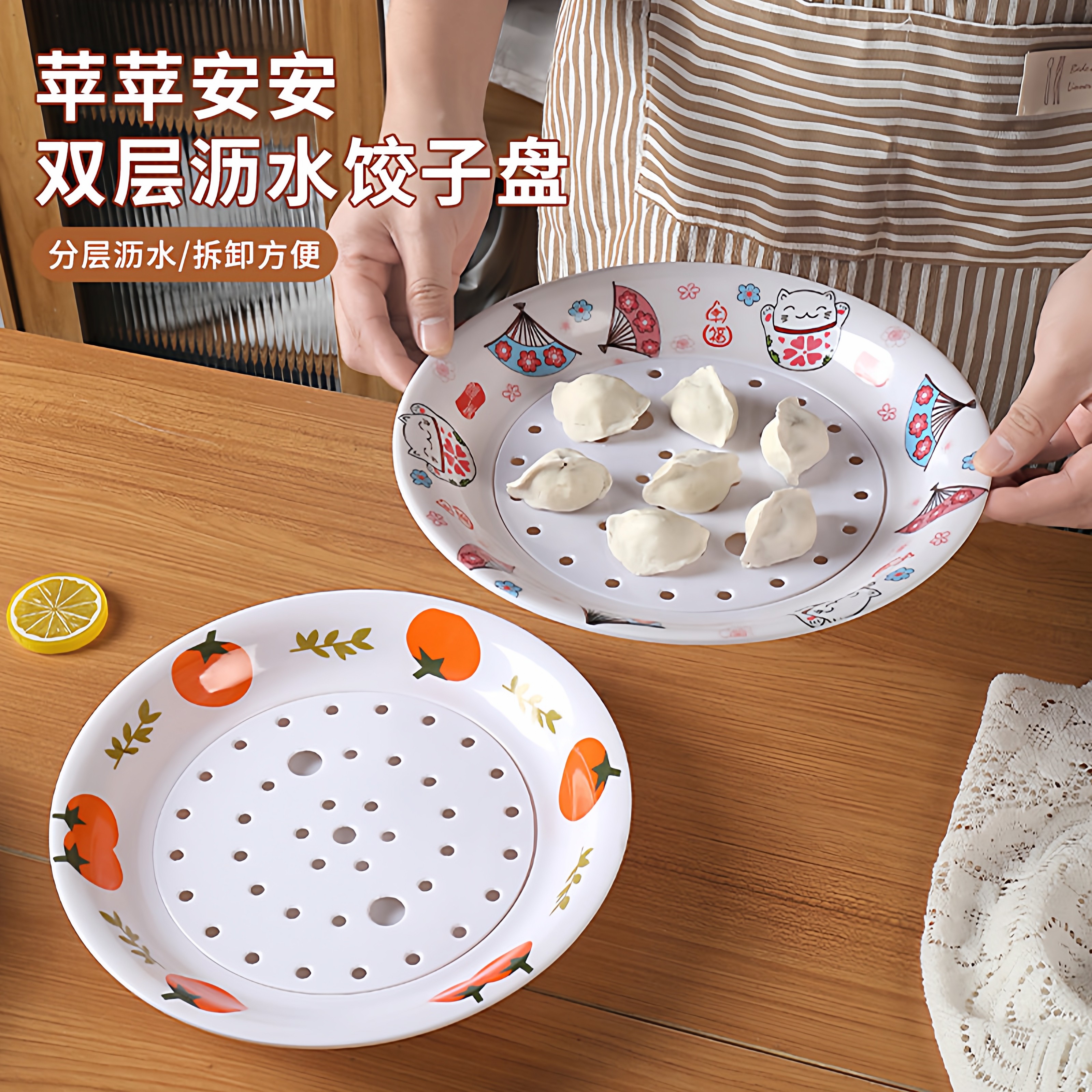 食品级密胺双层沥水饺子盘