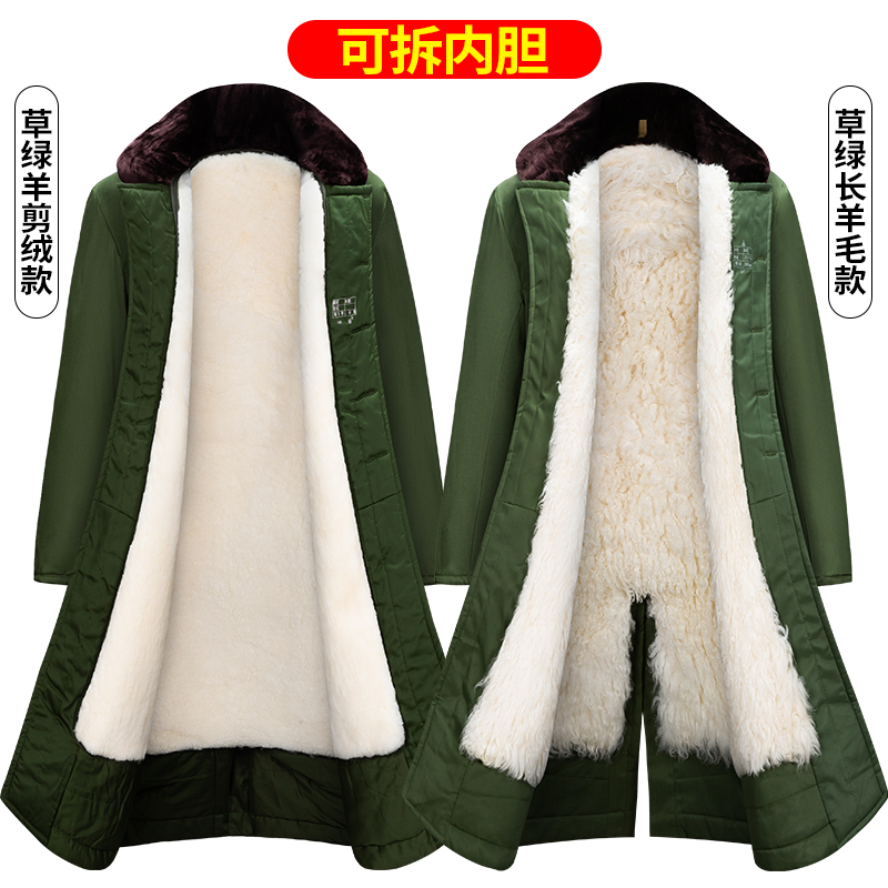 军棉大衣男冬季羊剪绒大衣皮毛一体长款劳保加厚老款防寒东北棉袄