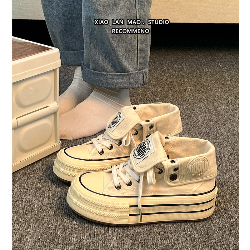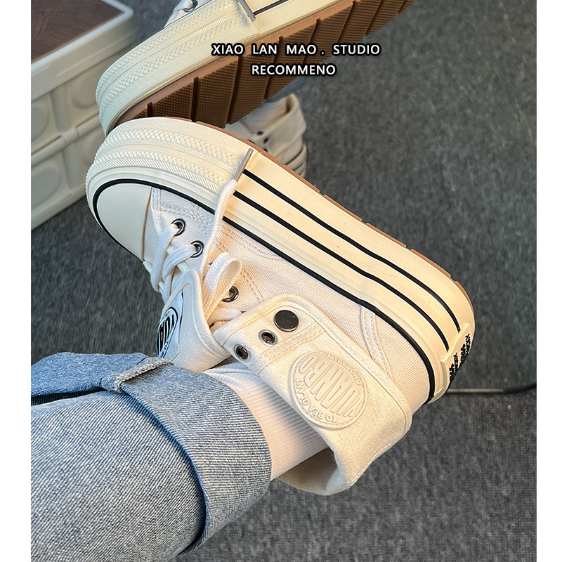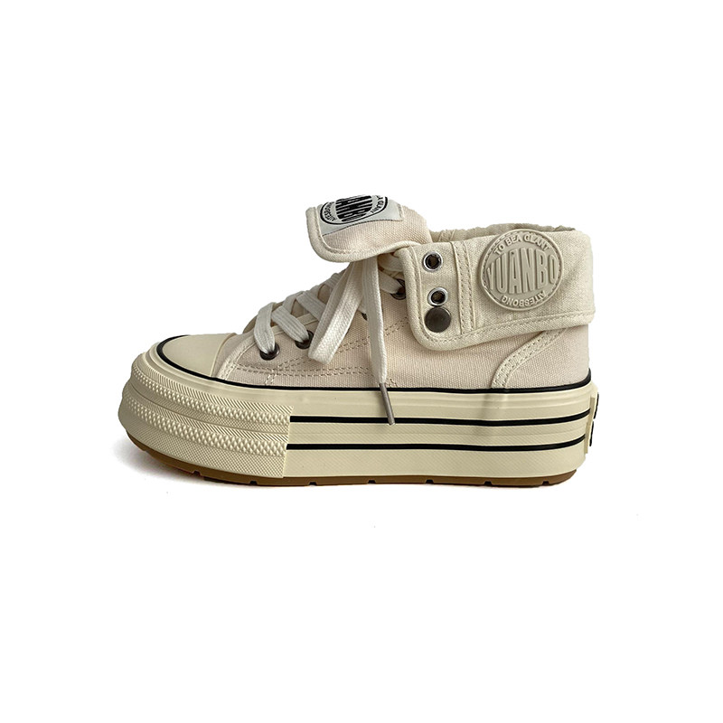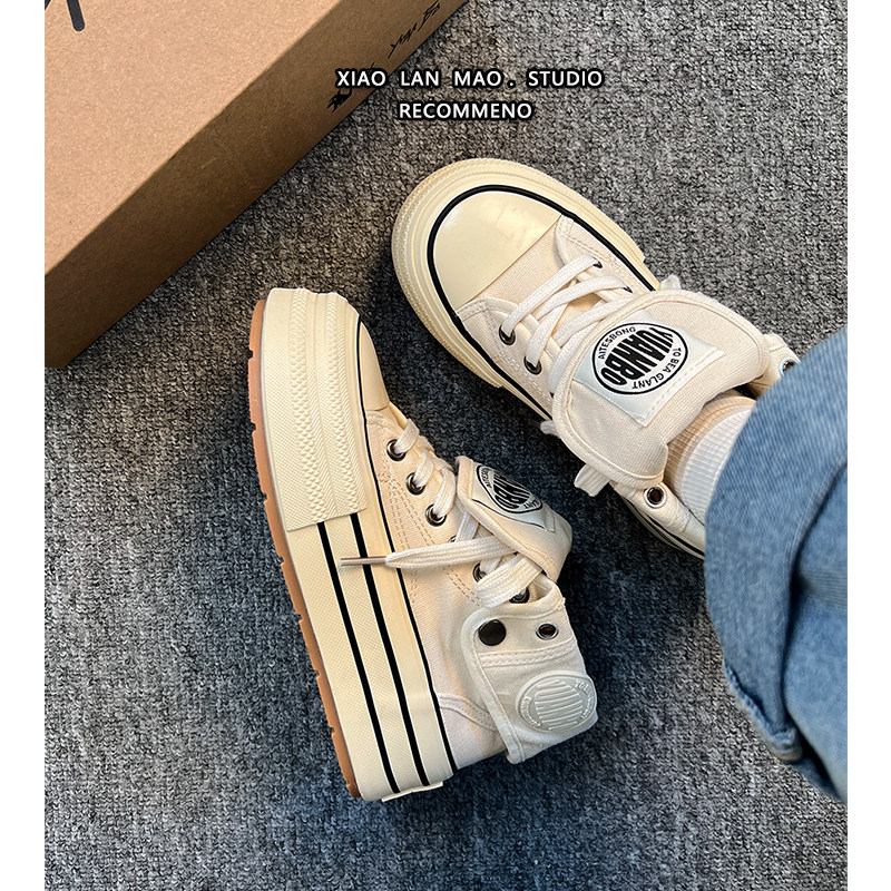 厚底百搭高帮帆布鞋女2026春夏新款日系板鞋小个子增高学生小白鞋