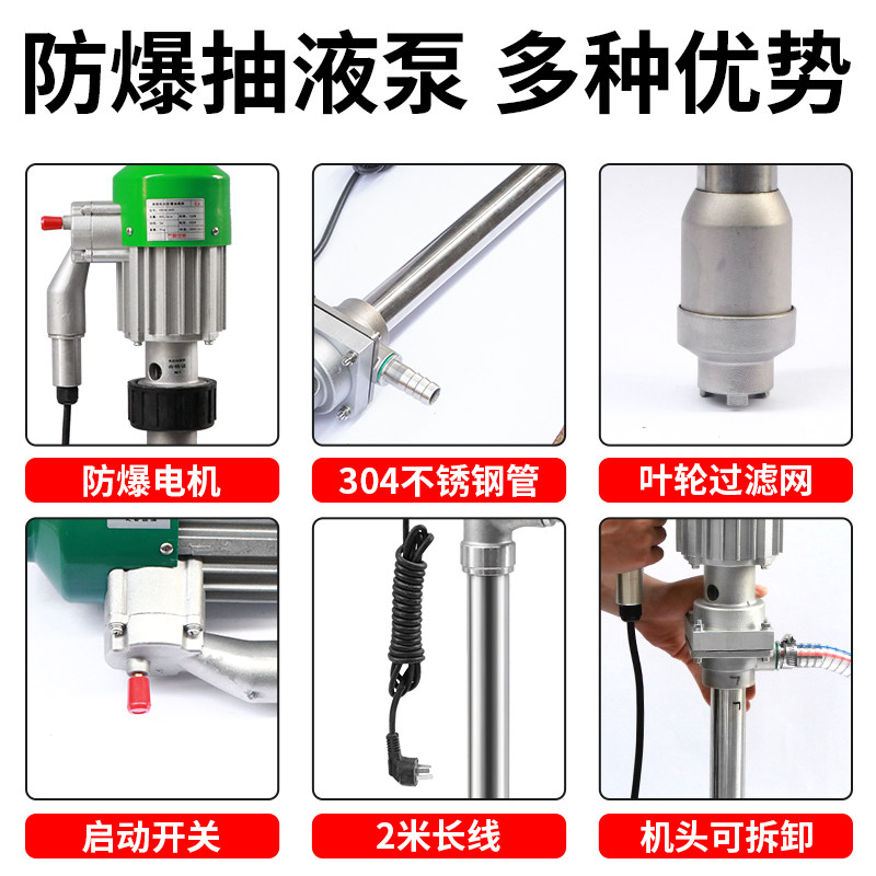 防爆汽油抽油泵电动220V大功率304不锈钢油桶泵抽液泵柴油酒精