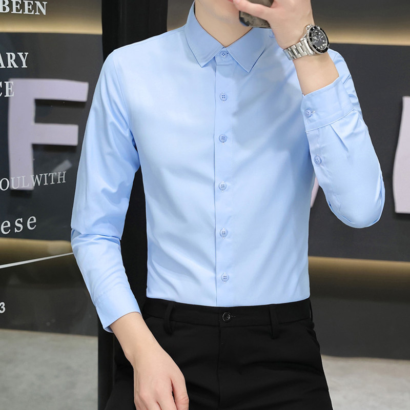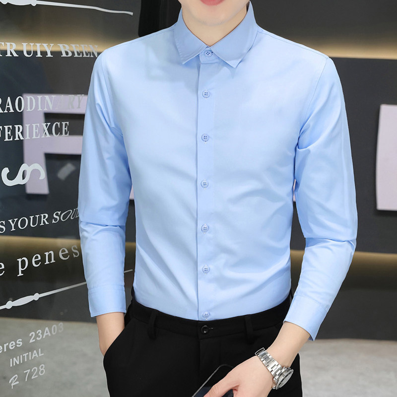 白色职业衬衫男士衬衣长袖修身纯色休闲商务正装黑色薄款秋季寸衫