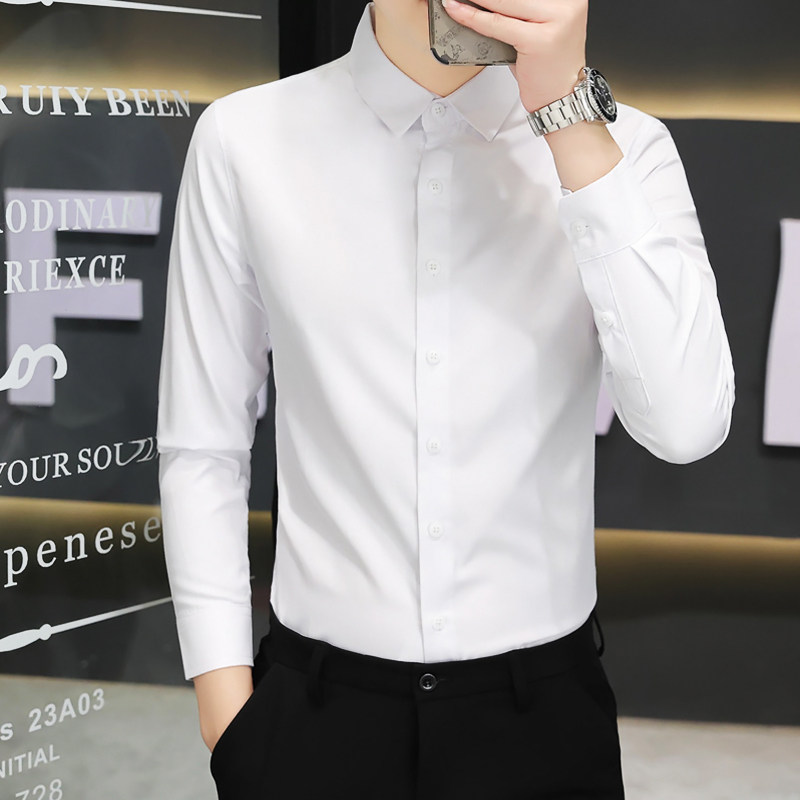 白色职业衬衫男士衬衣长袖修身