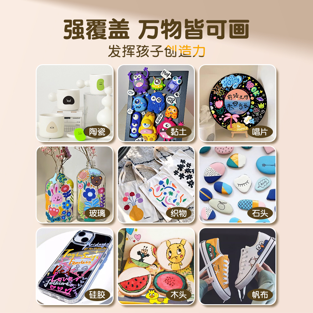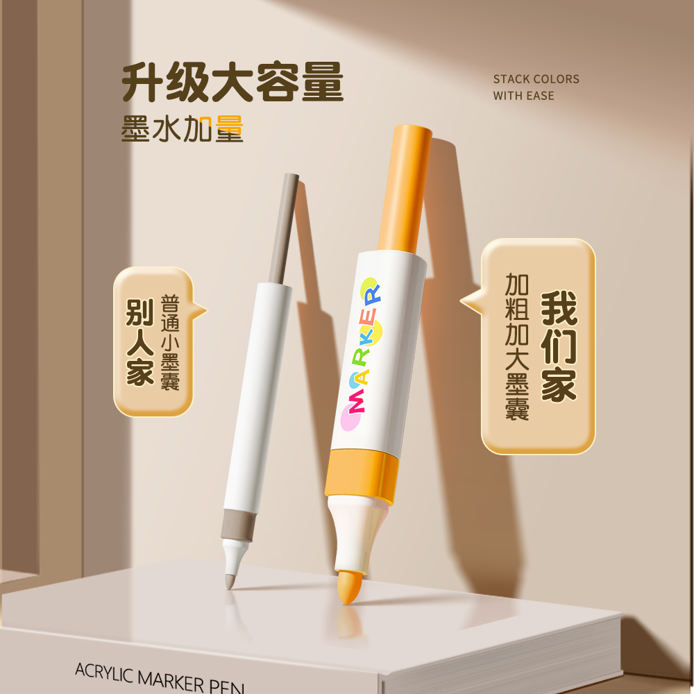 丙烯马克笔不透色可叠色24色小学生专用美术水彩笔彩色笔儿童画画可水洗无毒防水画笔套装48色幼儿园绘画笔芯