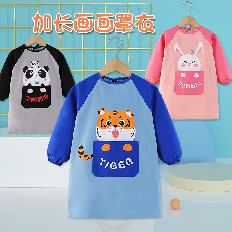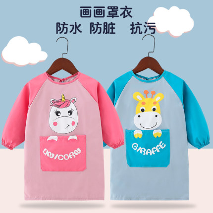 儿童画画罩衣美术生专用长袖绘画防水防脏宝宝围裙幼儿园长款围兜