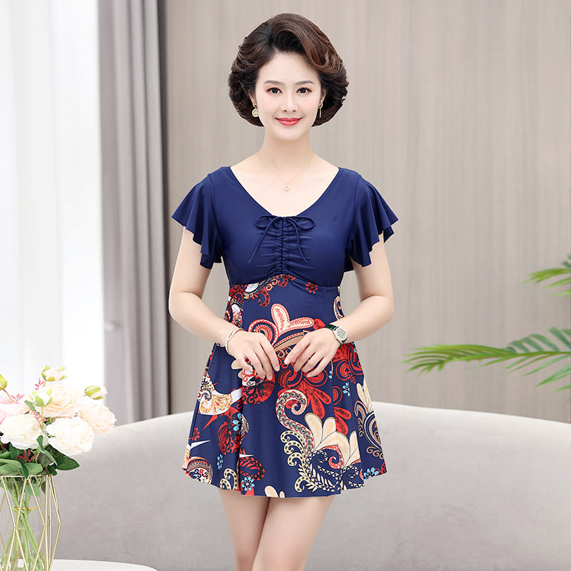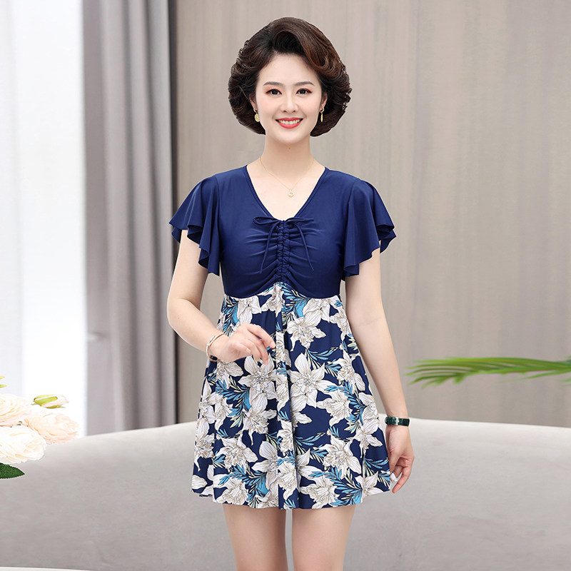 游泳衣女士中年妈妈中老年人裙式分体宽松大码保守遮肚泡温泉泳装