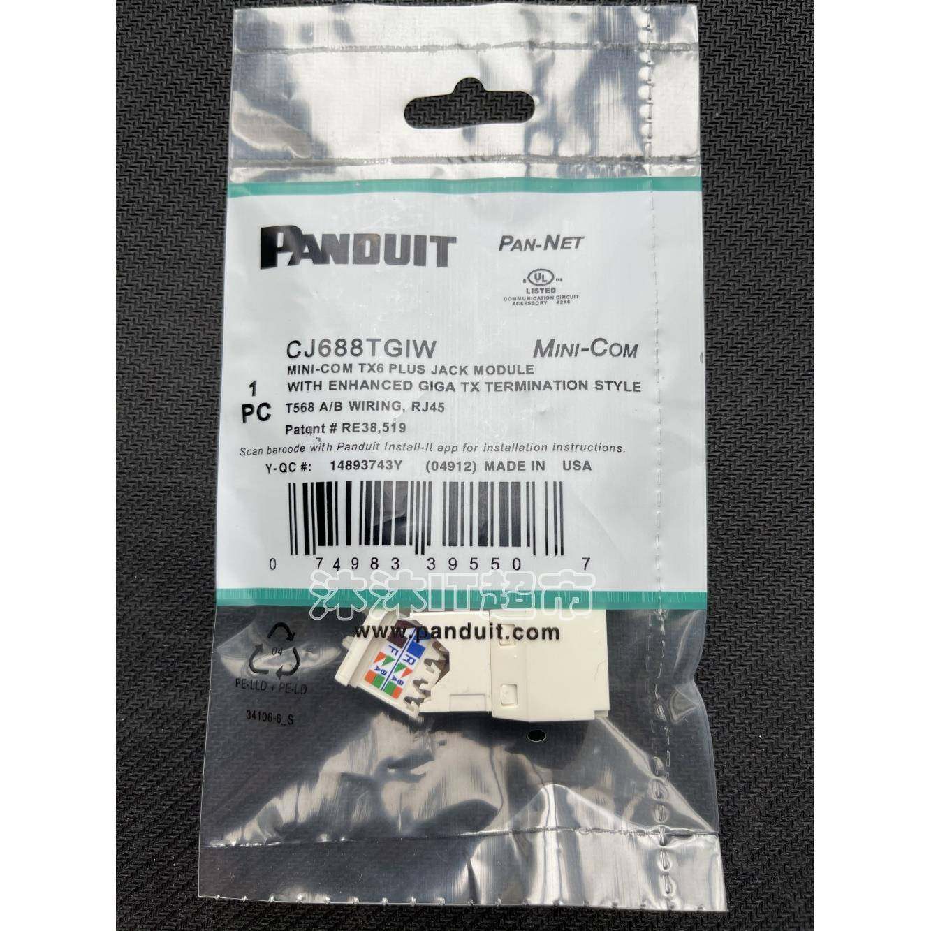 泛达PANDUIT非屏蔽六类网络模块CJ688TGBU配套平面单双口网络面板