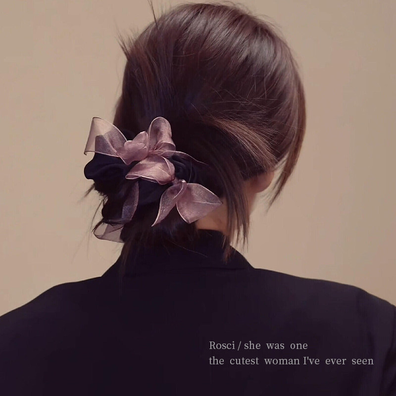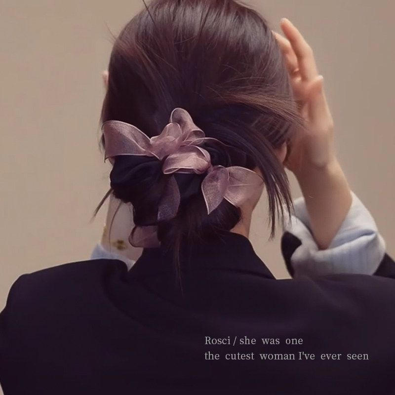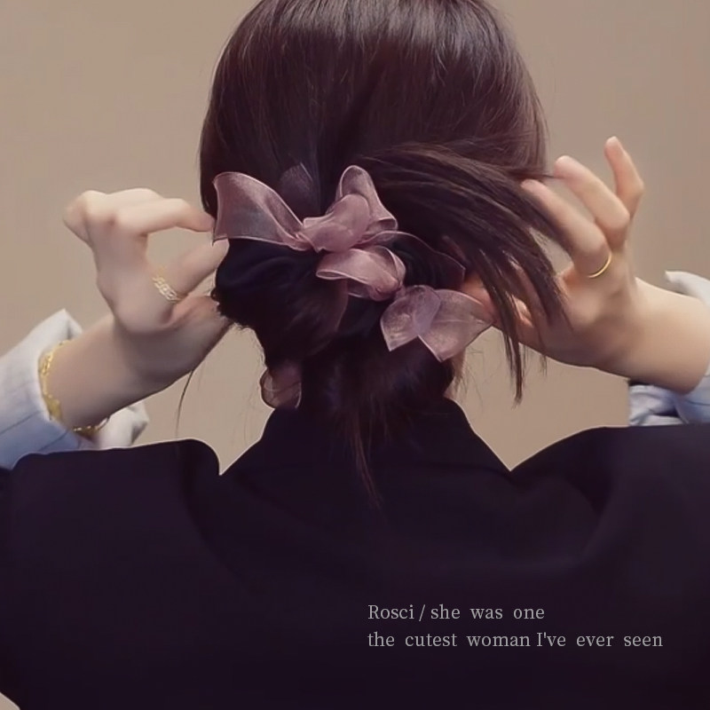明星同款蝴蝶结网纱大肠发圈女2026新款高级设计感扎丸子头绳发饰