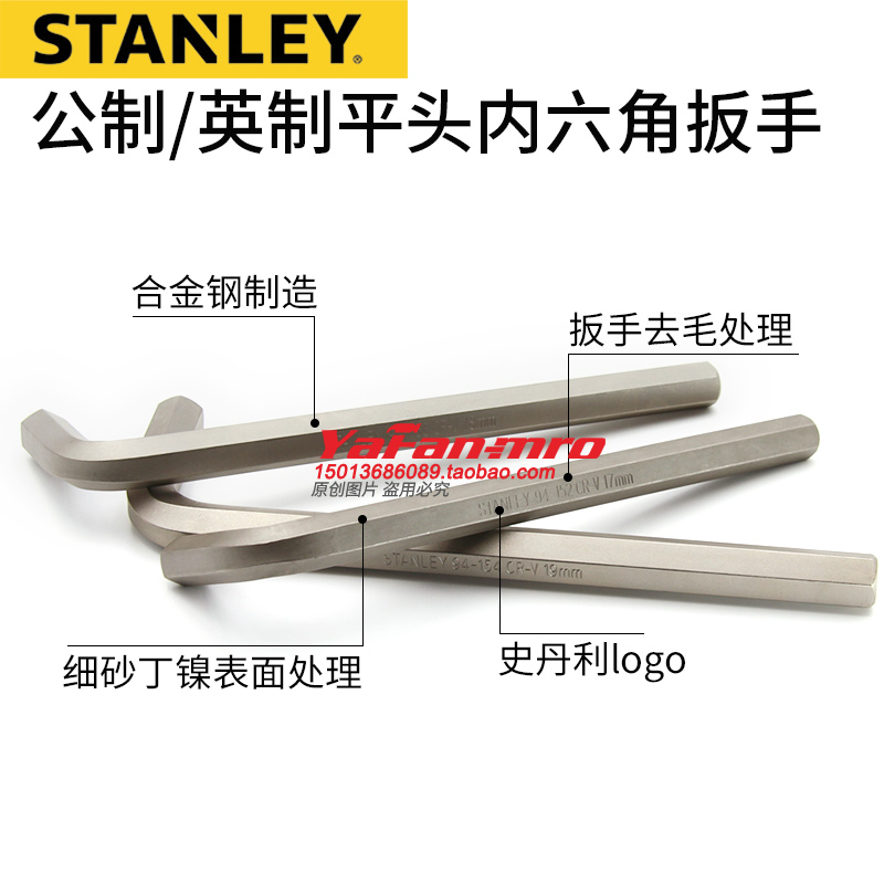 STANLEY新款史丹利强力大尺寸角扳手公制英制加长平头内六花工具