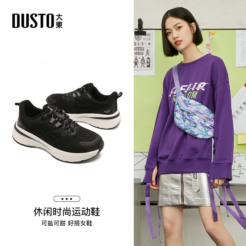 大东飞织鞋女鞋2024秋季新款时尚休闲简约平底系带中跟圆头Q1378