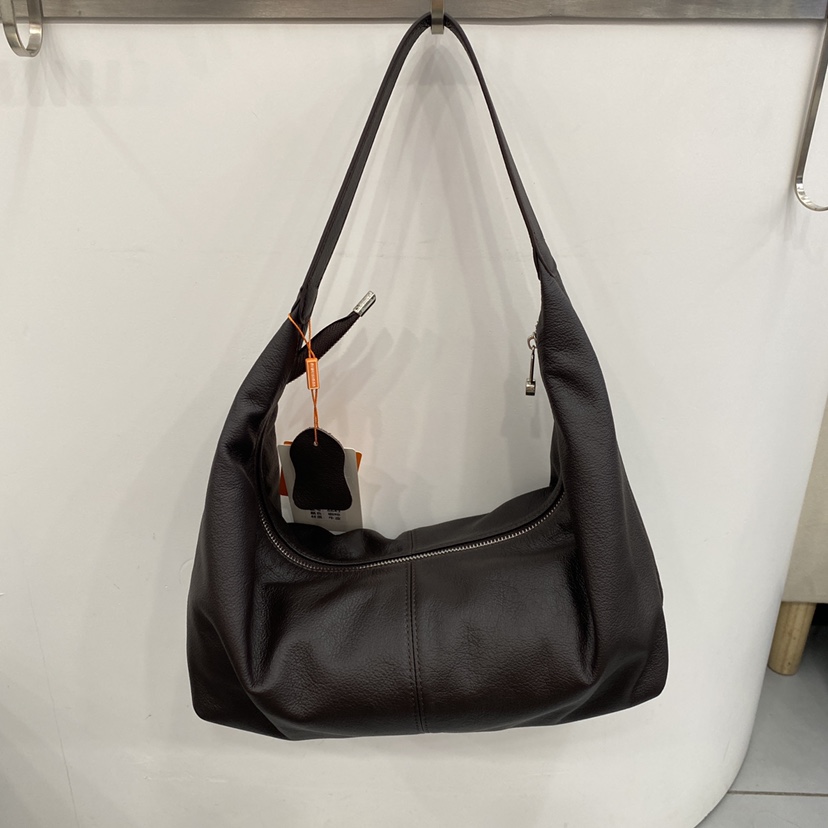 头层牛皮2025新款女包时尚百搭饺子包单肩腋下包托特包真皮包6643