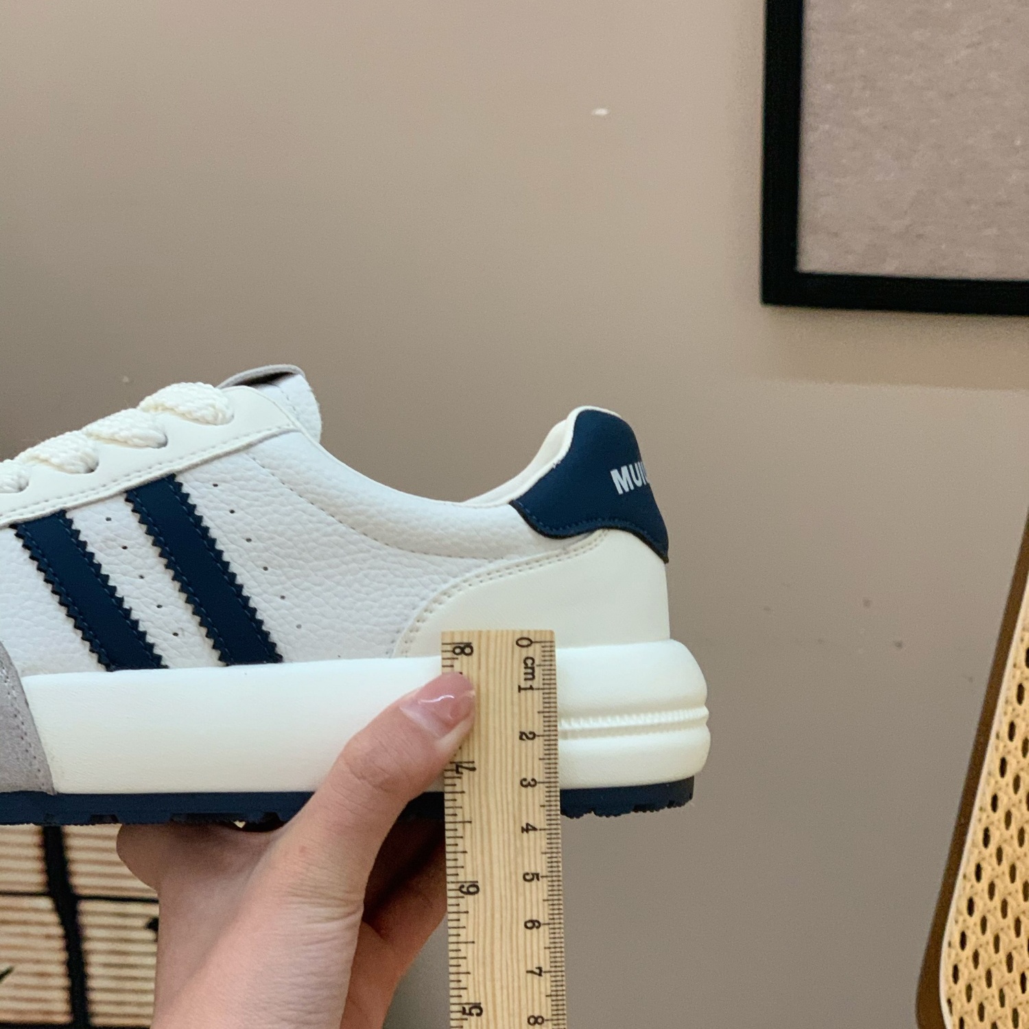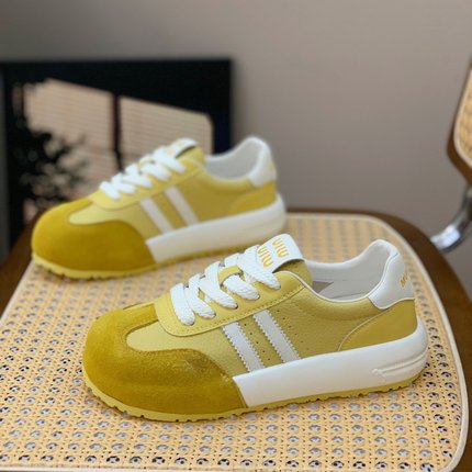 真皮厚底德训鞋女2025夏季新款百搭舒适系带拼色时尚休闲复古板鞋