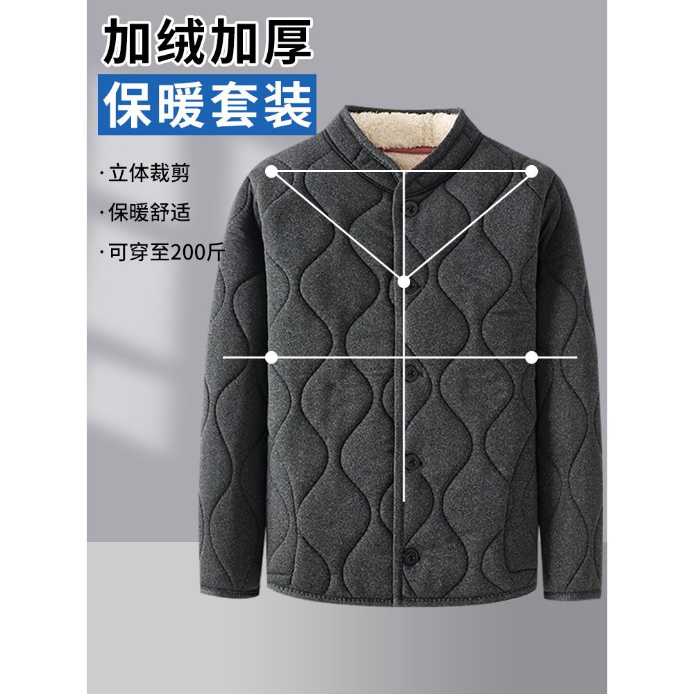 男士棉服冬季爸爸老年人保暖加厚棉衣棉裤套装羊羔绒棉袄