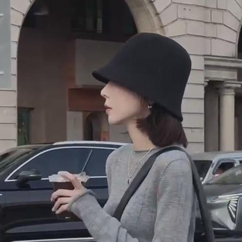韩版轻奢针织渔夫帽女夏薄款高级感小香风纯色水桶帽遮阳时尚盆帽