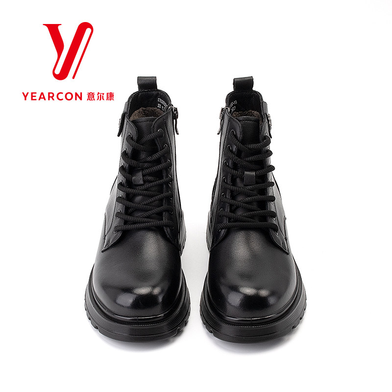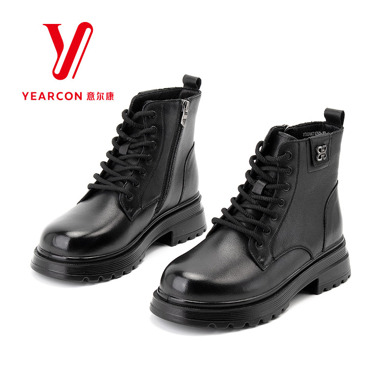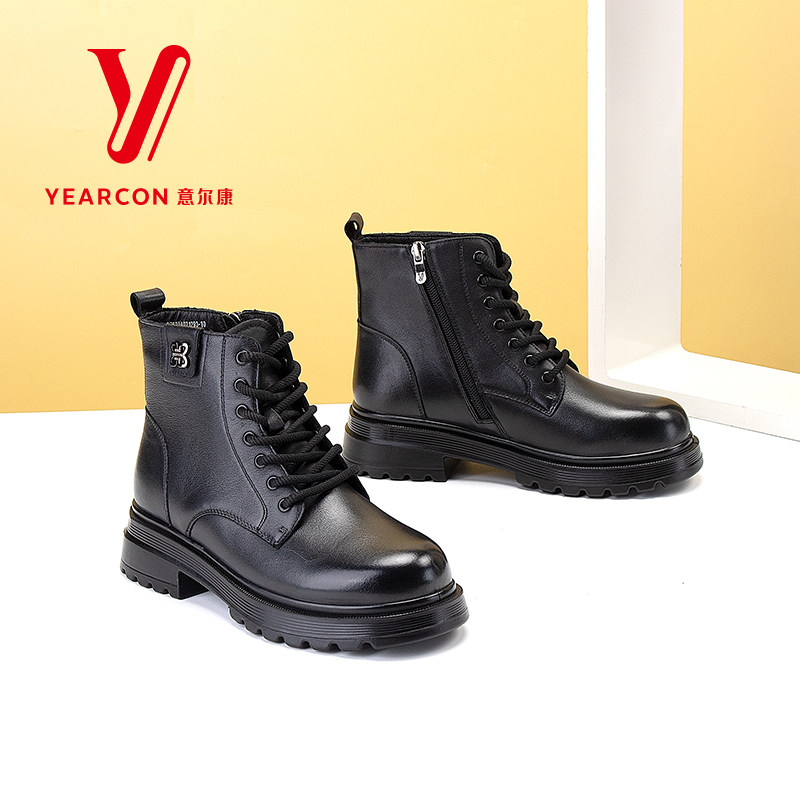 意尔康女鞋2025新款加绒马丁靴女