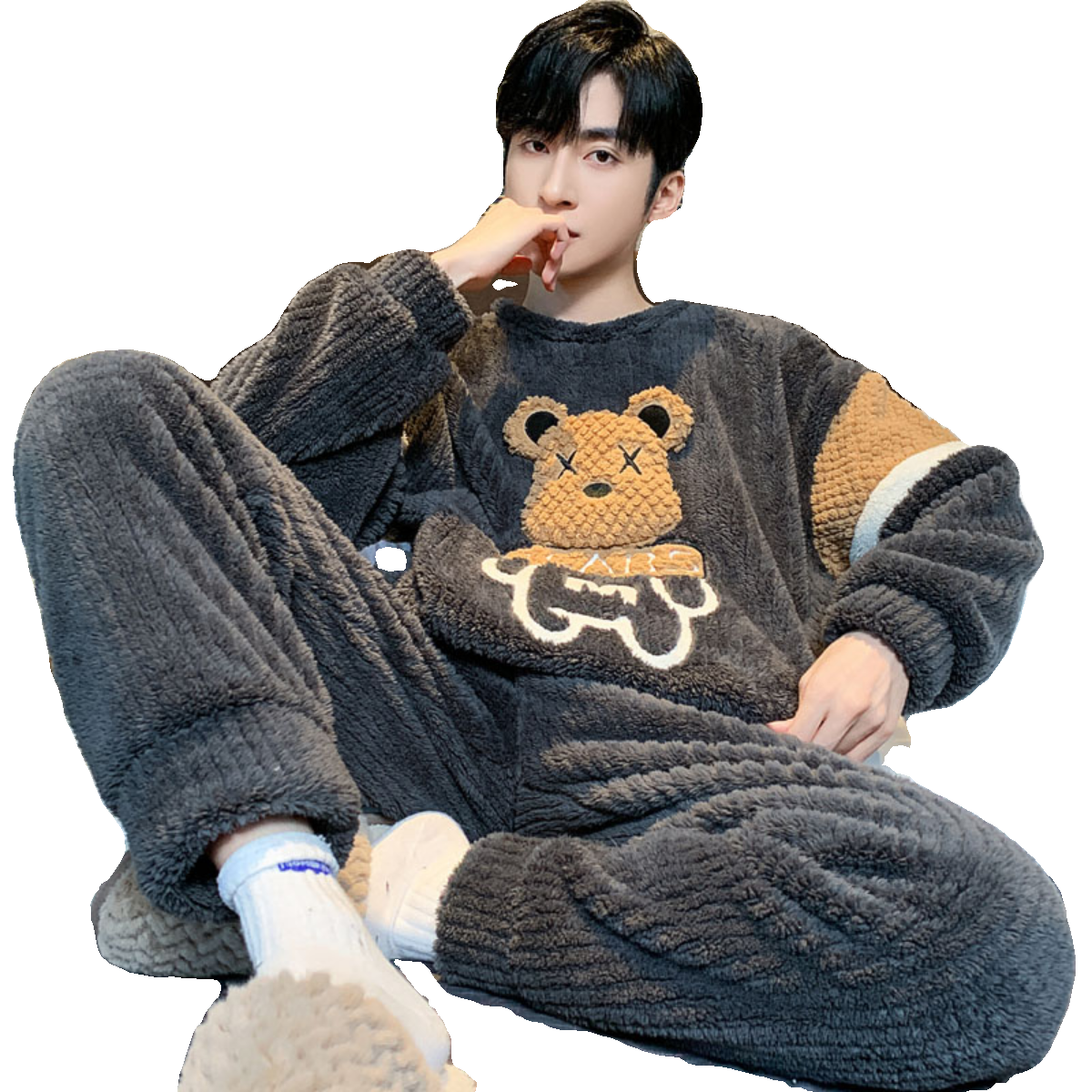 男士法兰绒不掉毛家居服