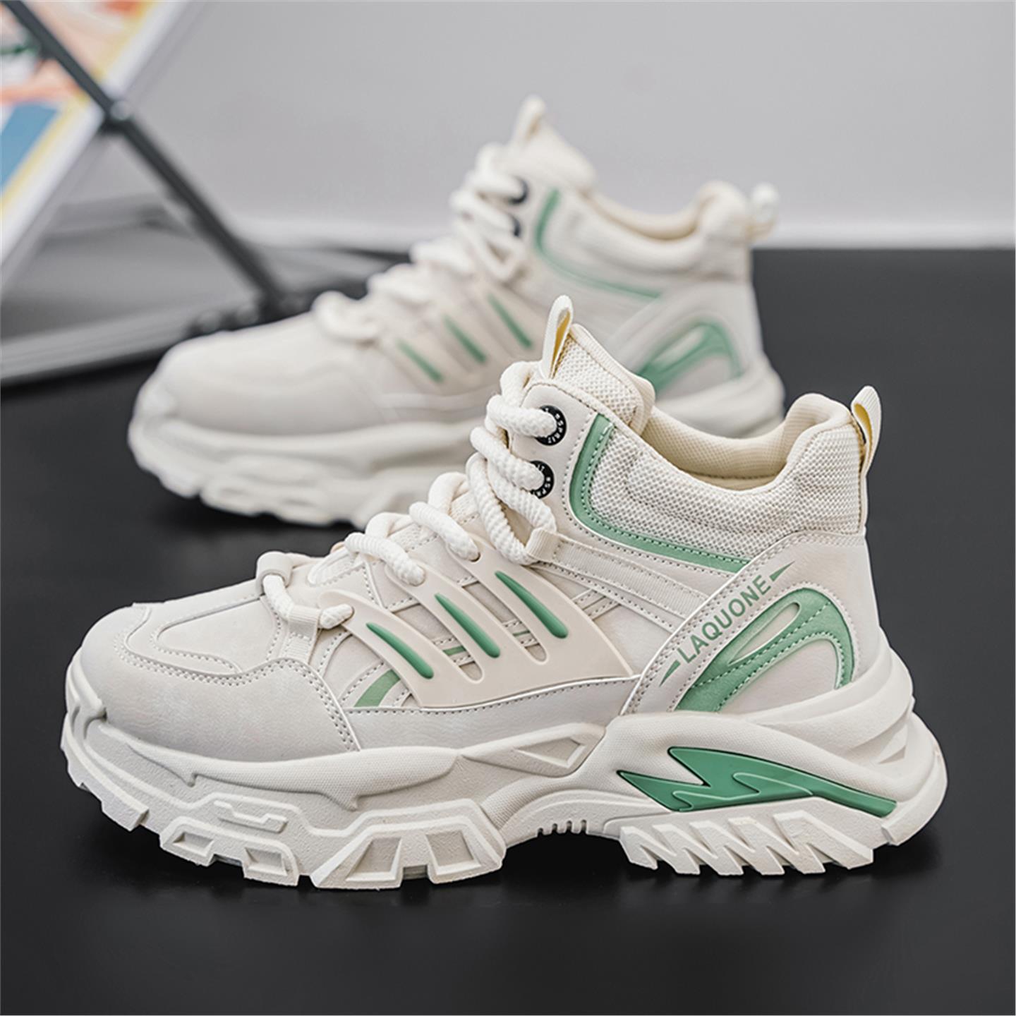 高帮男鞋秋季2025新款潮牌休闲运动鞋男士皮面厚底增高篮球老爹鞋