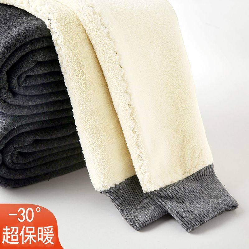 高档羊羔绒保暖裤男士冬季加绒加厚羊绒裤女护膝护腰高腰超厚棉裤