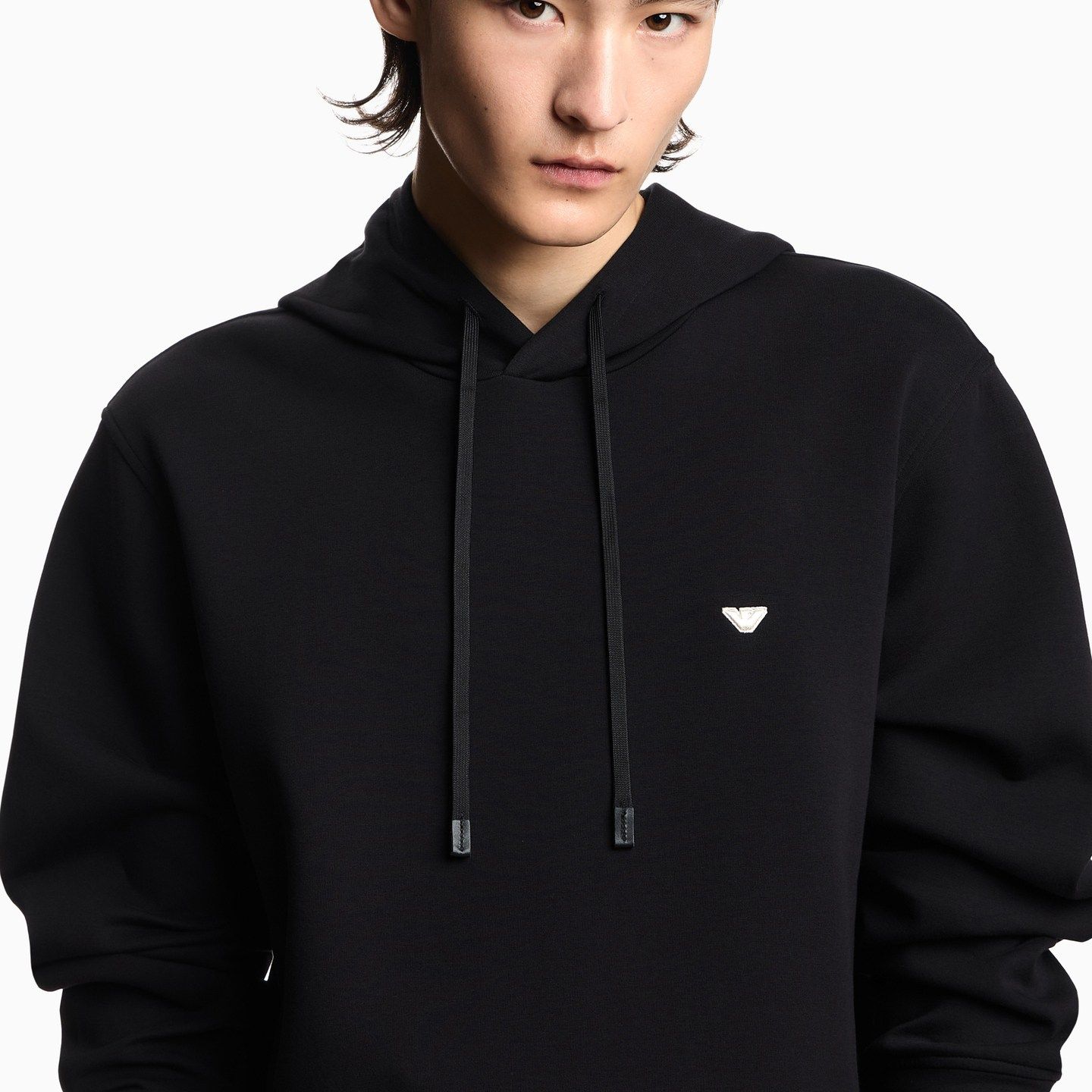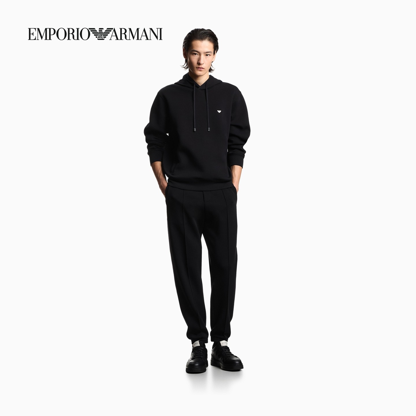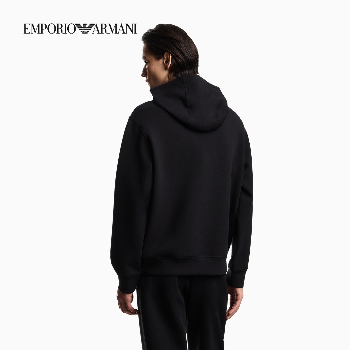 EMPORIO ARMANI/阿玛尼春新款男士连帽弹力刺绣黑色重磅休闲卫衣