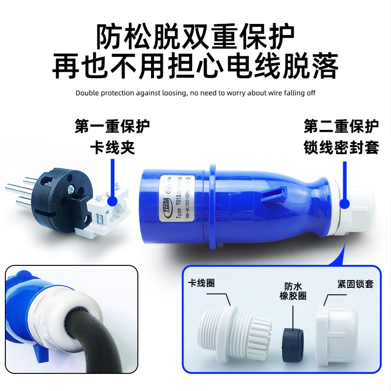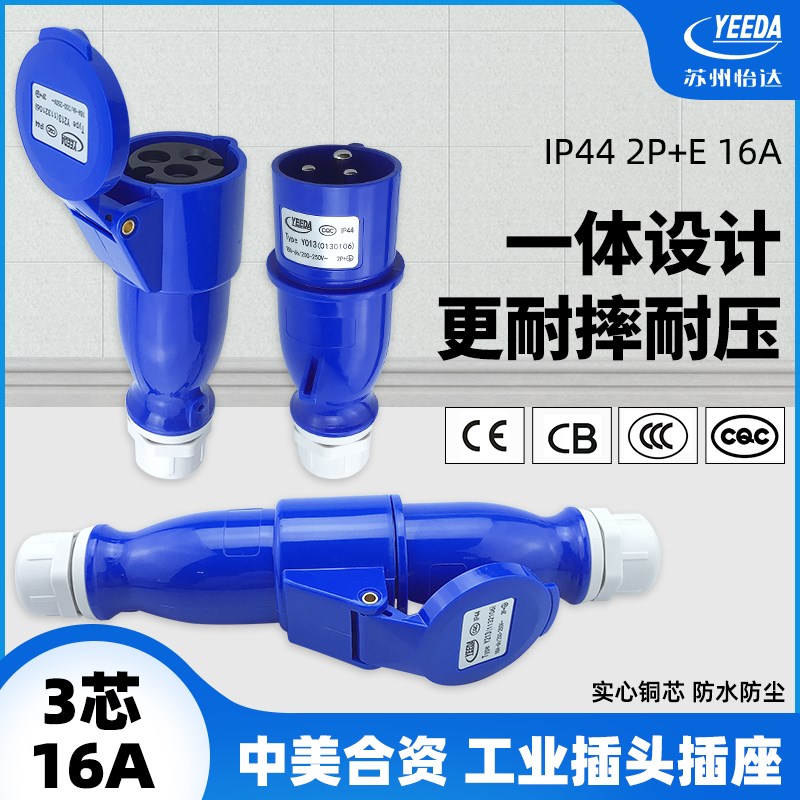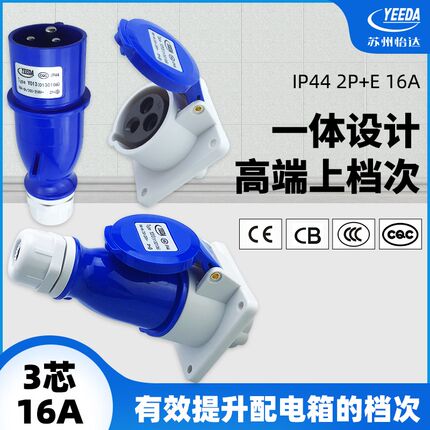 怡达yeeda工业插座3芯16A安公母对接插头防水航空连接器220V船用