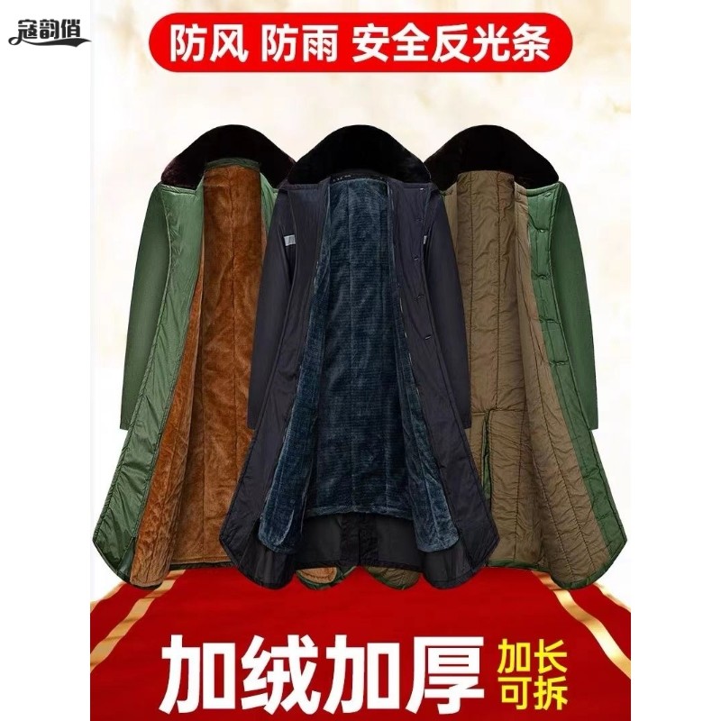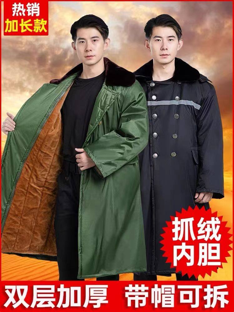 长款加厚军棉大衣男冬季冷库防寒服劳保绿棉袄老式风衣东北大棉.