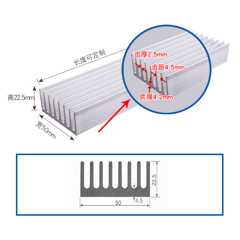 铝型材散热器 电子散热片宽50mm高22.5mm长100mm 现货 厂家直销