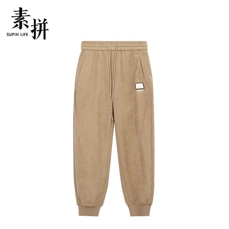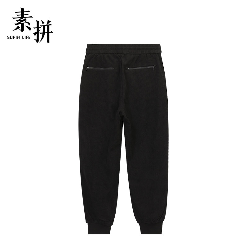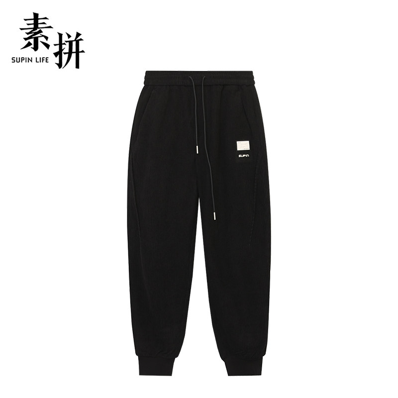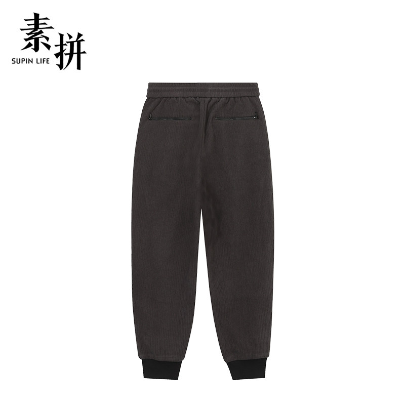 素拼男装冬季男士休闲裤宽松松紧腰运动裤收口小脚裤哈伦裤