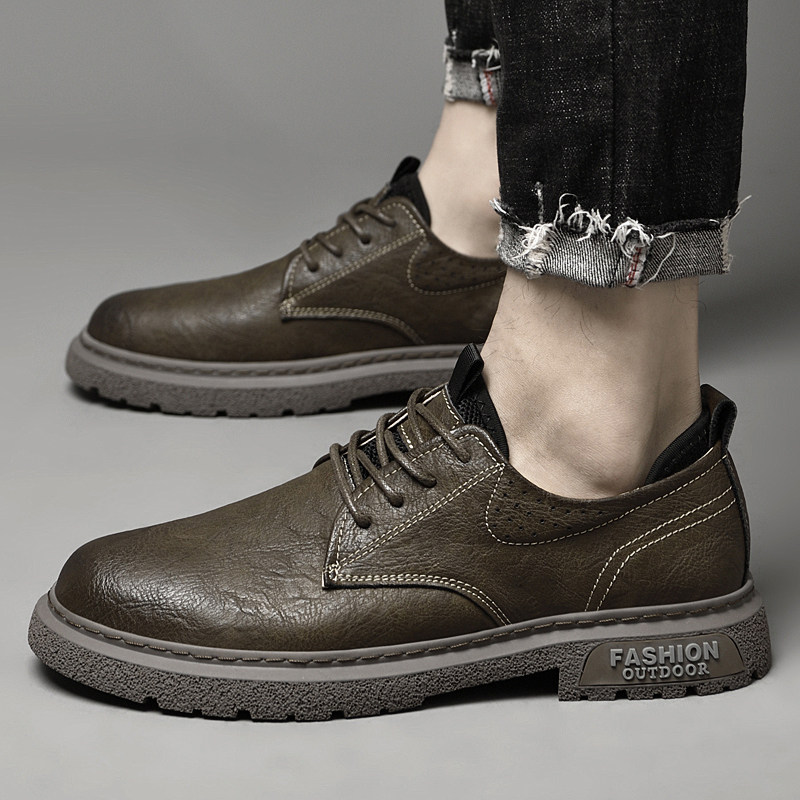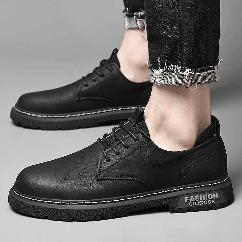 脚王KFT男鞋马丁靴男款低帮春秋透气真皮休闲皮鞋男士复古英伦夏