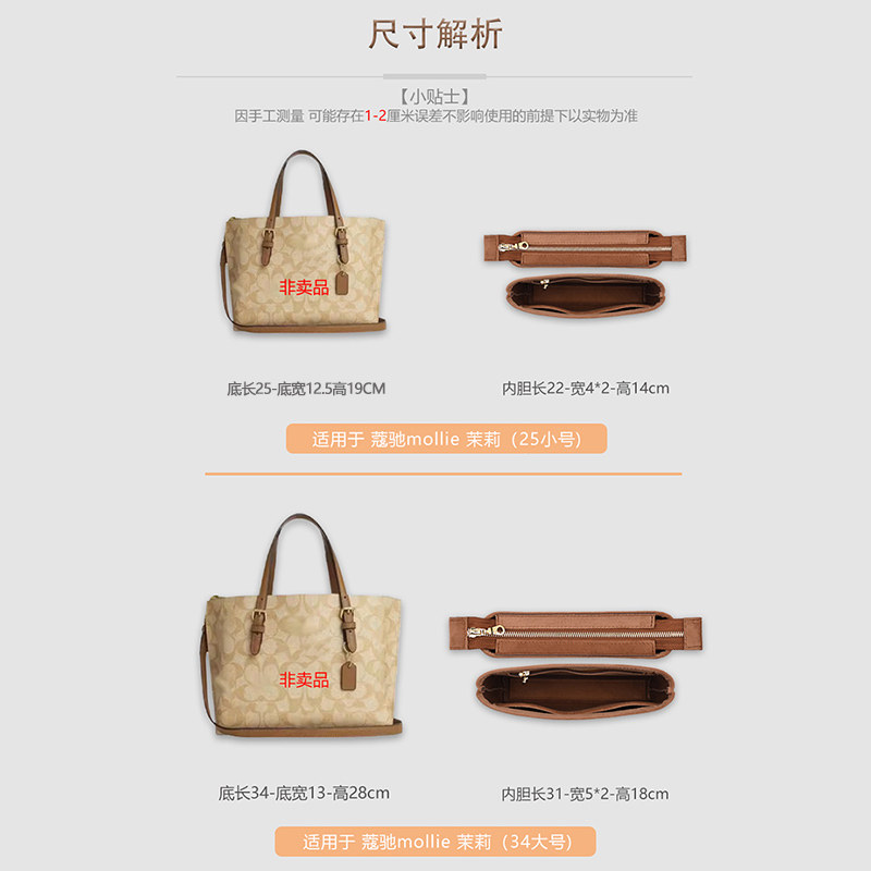 适用coach蔻驰mollie内胆包内衬袋茉莉托特包中包25 34收纳包撑形