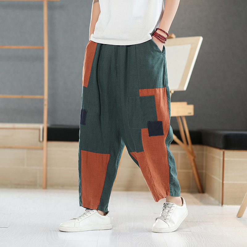 夏季中国风男装复古风乞丐裤男士棉麻阔腿裤子宽松休闲亚麻哈伦裤