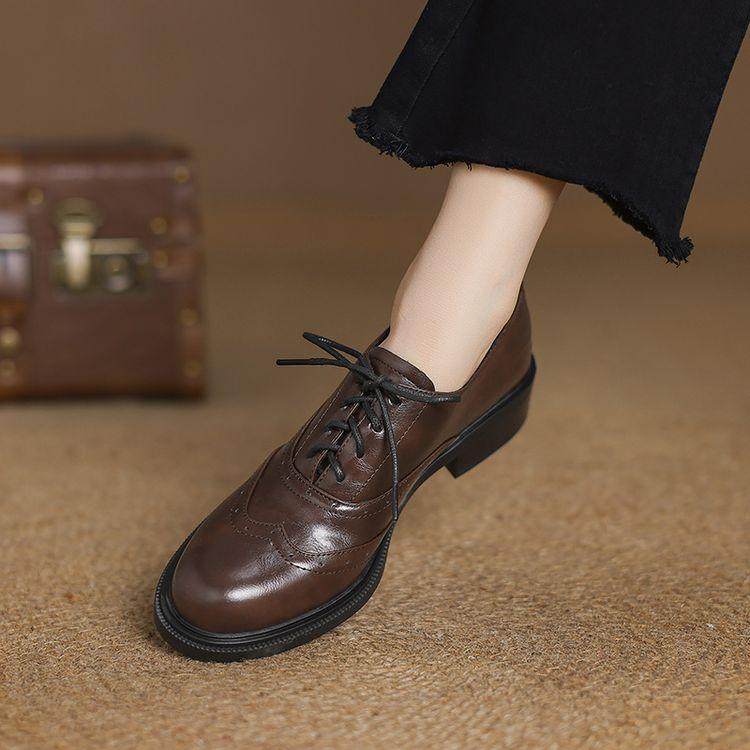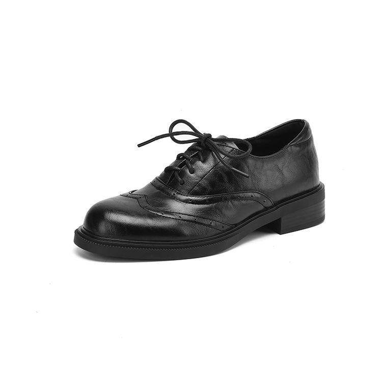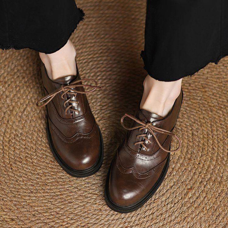 英伦风布洛克小皮鞋女2025春秋新款复古小皮鞋粗跟系带平底单鞋