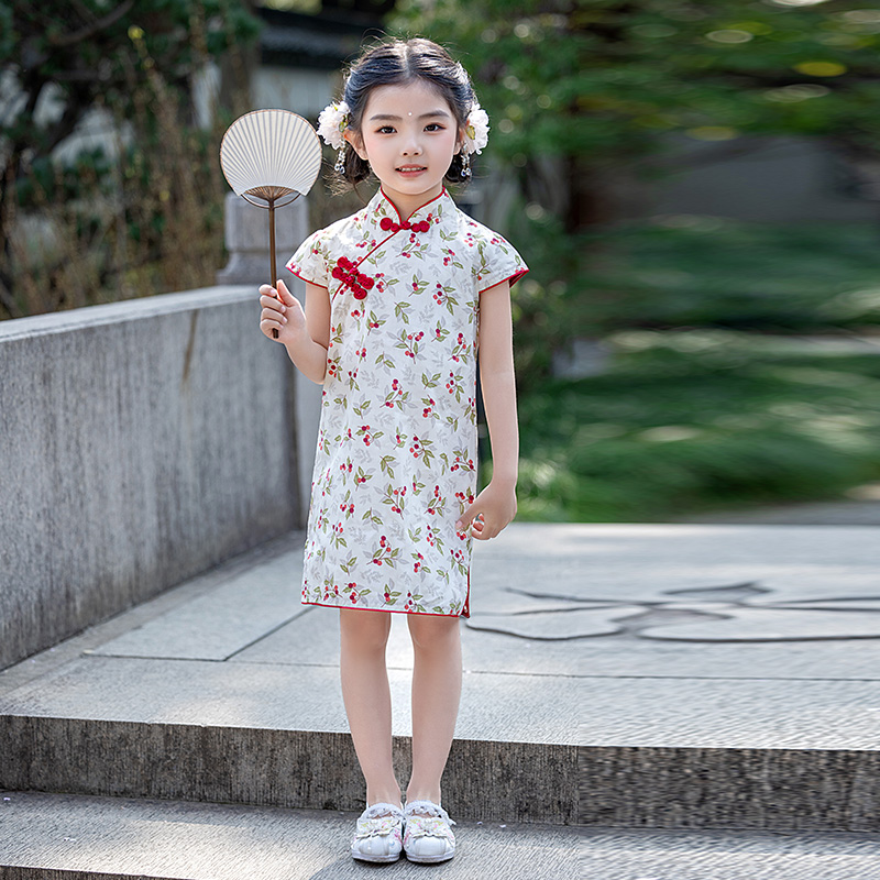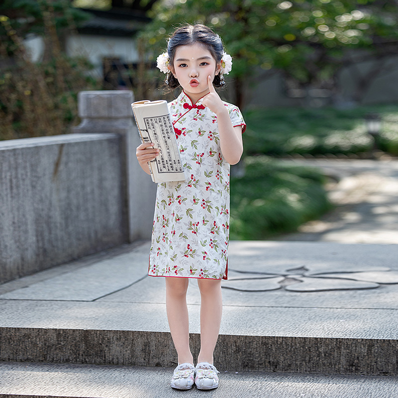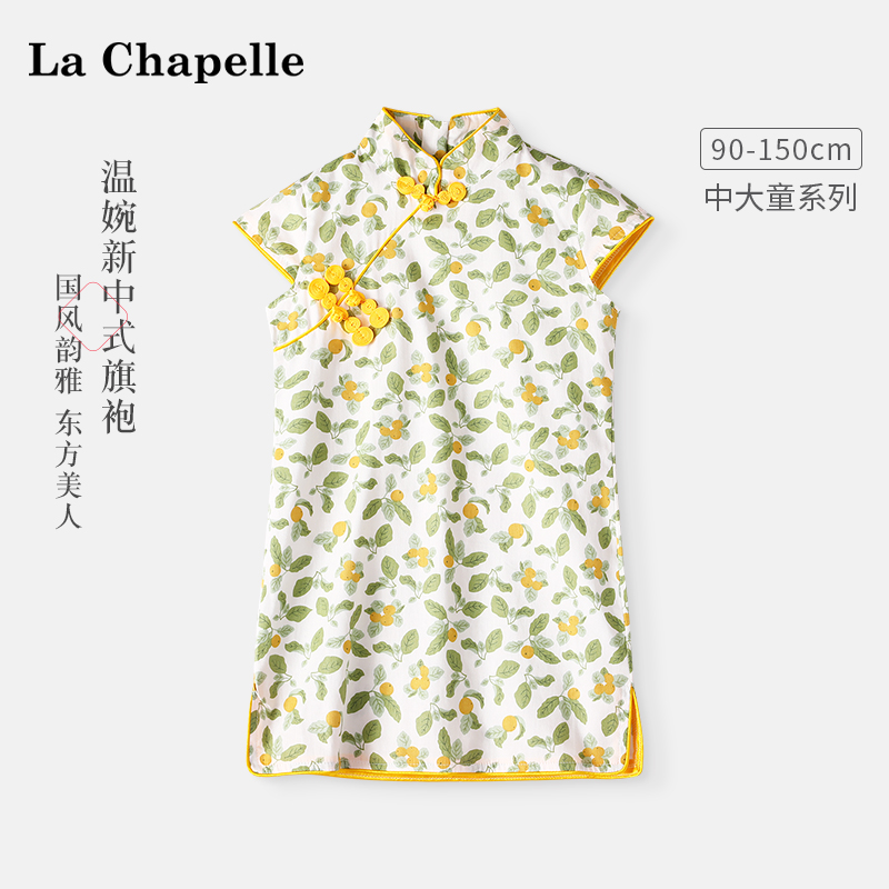 拉夏贝尔儿童国风连衣裙夏季新款旗袍女孩新中式裙子纯棉夏装汉服
