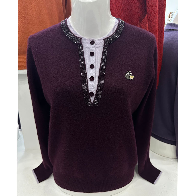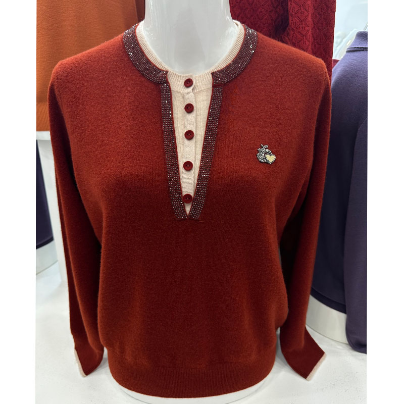 妈妈秋装2025新款针织上衣圆领羊毛衫秋露金企中老年女打底羊绒衫