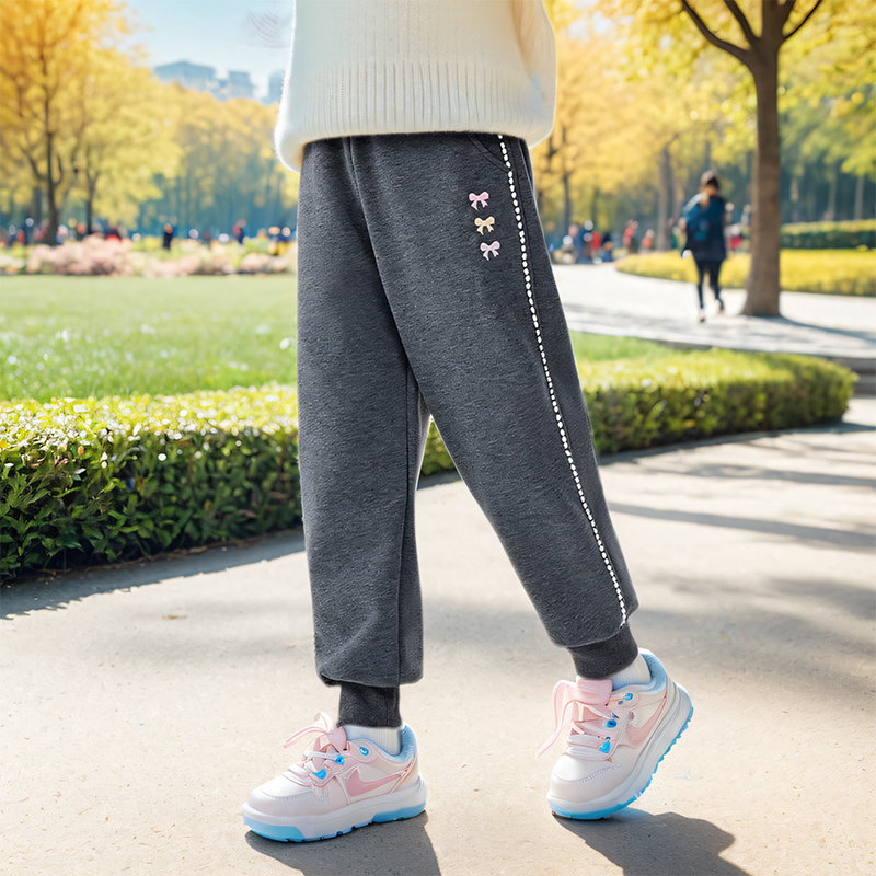 春秋抗起球女童加绒裤裤子2025新款儿童中大童运动裤卫裤休闲长裤