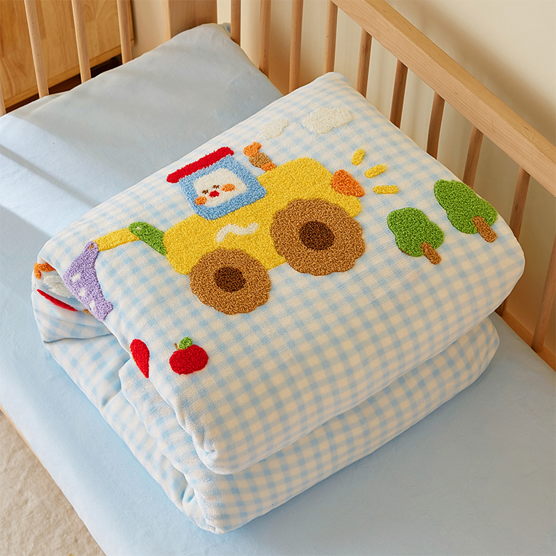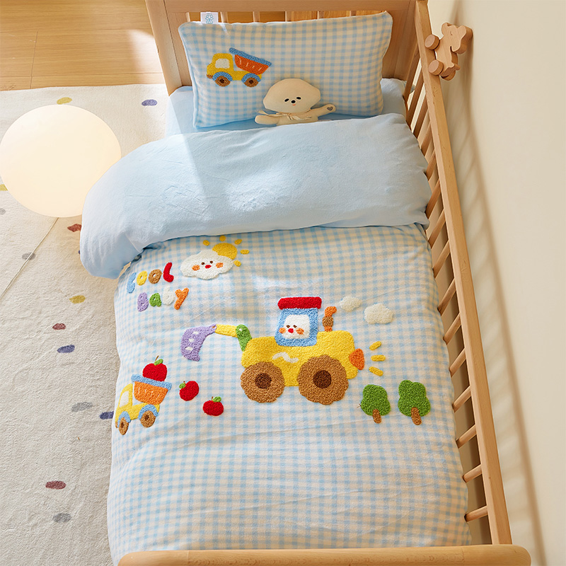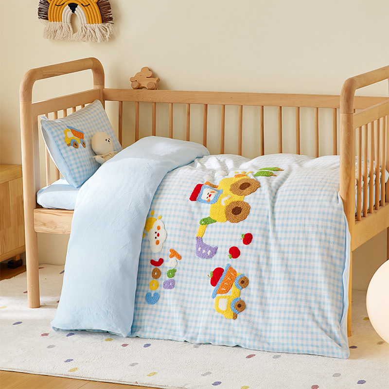 牛奶绒幼儿园被子三件套卡同绣花加厚加厚六件套宝宝入园儿童床品