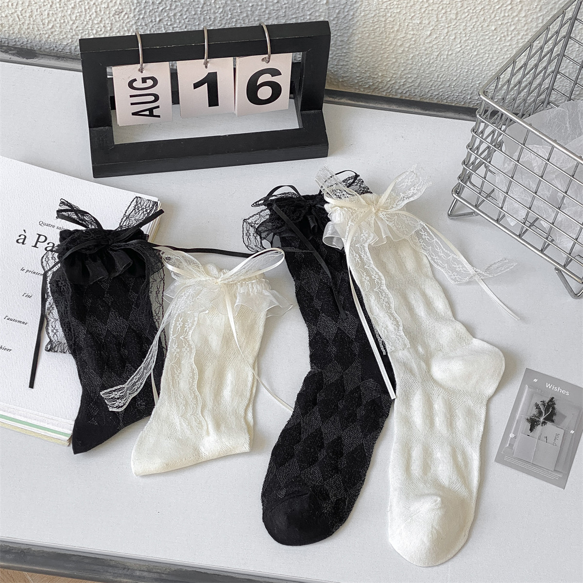 超薄女士蝴蝶结蕾丝织带网孔中筒袜 网袜 装饰袜 全店5双包邮