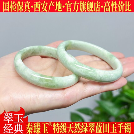 特级蓝田玉手镯满绿翠正圈西安原产地官方旗舰店正品保真天然活玉